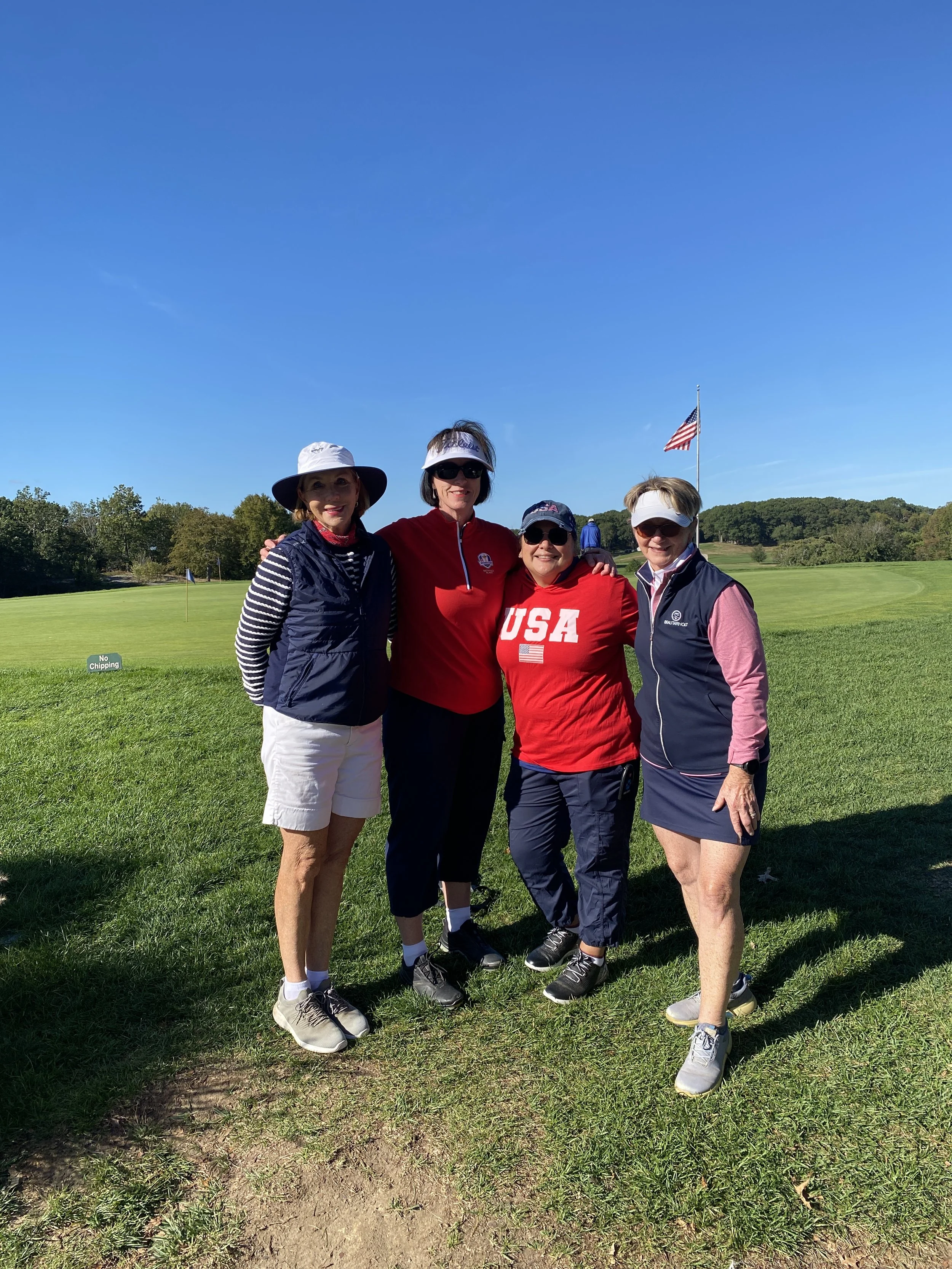 The Fairway Ladies Afternoon crew teed off their inaugural 9-hole Ryder Cup Scramble on a gorgeous Sunday afternoon, with eight players bringing their A-game and plenty of laughs. Team Europe- Suzan, Suzanne, Angela, and Connie- captured the trophy with a decisive win and some stellar play. Congratulations to the champions and cheers to everyone who made the first of many Ryder Cup Sundays such a fun success. Special shout out to Pat G. for all of her work organizing the 9-hole events!